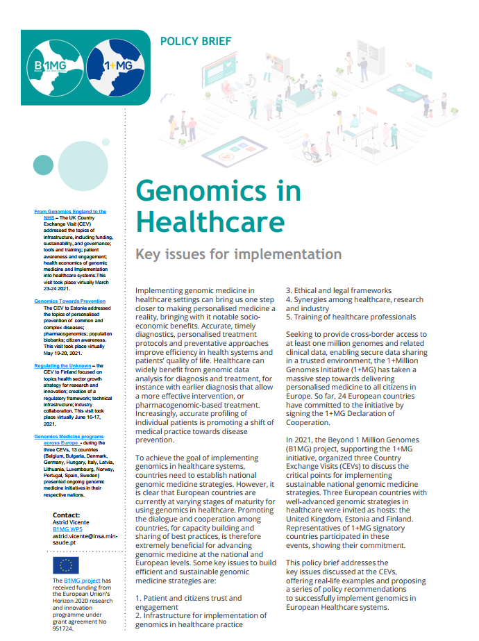 Download B1MG Policy Brief Genomics in Healthcare – Key issues for implementation